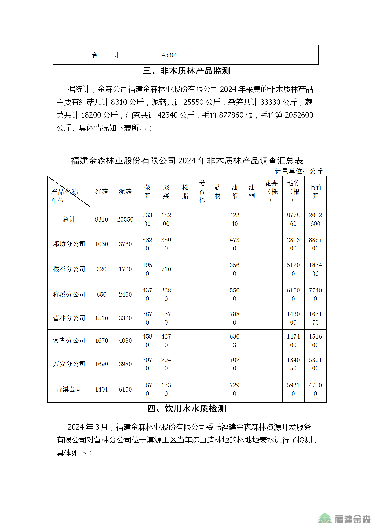 金森公司2024年監(jiān)測(cè)結(jié)果